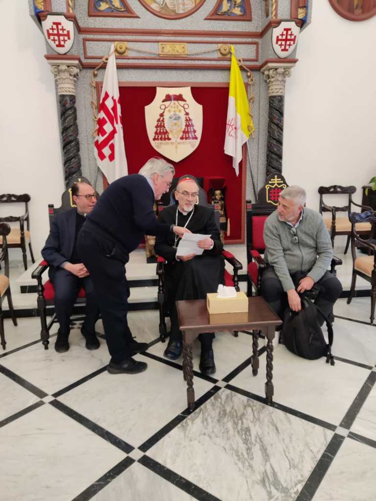 La nostra Unità Pastorale 54 ha consegnato al cardinale Pizzaballa un assegno di 12.010 €. Nelle foto la consegna dei soldi al Cardinale. Il nostro moderatore, Don Ruggero Marini, al momento della consegna. La nostra PARROCCHIA di Candiolo ha contribuito con la somma di 3.520,00 €. Ringrazio veramente tutti per la grande generosità dimostrata.